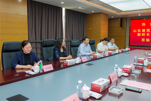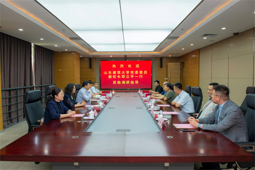 2025年5月19日上午,山東建筑大學(xué)黨委委員、副校長邱立平一行5人來集團(tuán)公司調(diào)研。集團(tuán)公司黨委書記、董事長徐鵬強(qiáng)陪同。邱立平一行參觀了企業(yè)展廳、建筑史館,詳細(xì)了解集團(tuán)公司發(fā)展歷程、企業(yè)文化。隨后,賓主雙方重點圍繞學(xué)校學(xué)科專業(yè)特色、人才培養(yǎng)、校企合作等進(jìn)行了深入交流。 山東建筑大學(xué)科學(xué)技術(shù)處處長王軍、社會科學(xué)處處長王淑華、市政與環(huán)境工程學(xué)院黨委書記李杰瑞、市政與環(huán)境工程學(xué)院院長母銳敏;濰坊市奎文區(qū)副區(qū)長劉兵(掛職,原山建大資源與環(huán)境創(chuàng)新研究院負(fù)責(zé)人),濰坊市建筑設(shè)計研究院黨委書記趙延國,集團(tuán)公司副總裁惠守江以及企業(yè)發(fā)展部總經(jīng)理張煒、一建公司總經(jīng)理周光輝參加座談。
