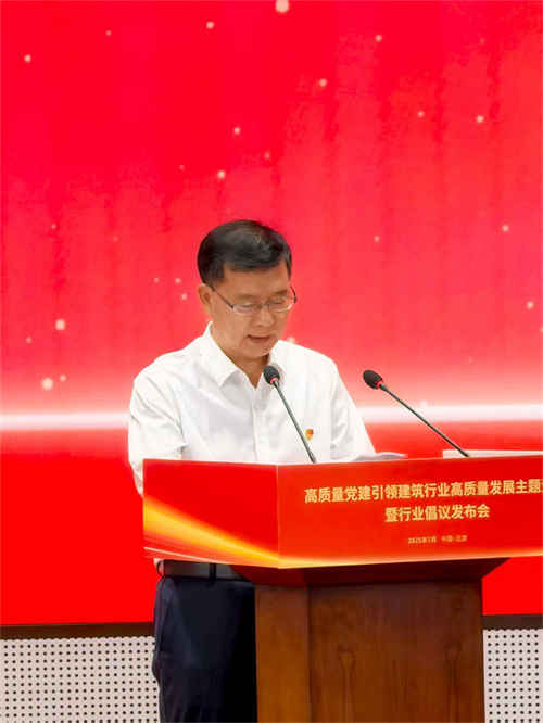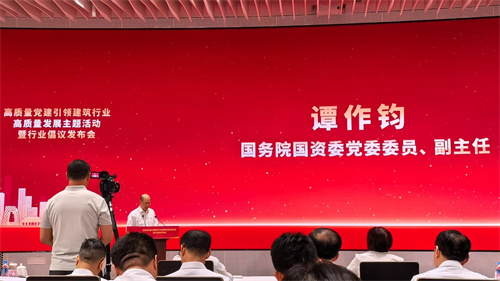 2025年7月7日下午,全國高質(zhì)量黨建引領建筑行業(yè)高質(zhì)量發(fā)展主題活動暨行業(yè)倡議書發(fā)布會在北京中建財富國際中心召開,國務院國資委黨委委員、副主任譚作鈞,全國工商聯(lián)黨組成員、副主席汪鴻雁出席會議并發(fā)表重要講話。集團黨委書記、董事長徐鵬強出席會議并作表態(tài)發(fā)言。